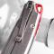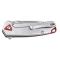 Manche en plaquettes G10 gris avec texture triangulaire. Poignée ergonomique et confortable même par temps humide. Backspacers rouges pour un superbe contraste avec boucle de lanière intégrée