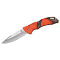 Lame en acier inoxydable 420 à cran, manche decor camo orange. Système ouverture/fermeture à pompe. Double bouton d'ouverture une main. Encoche pour cordon et clip de ceinture. Made in USA Dimensions: longueur de lame : 8 cm longueur de manche : 11 cm longueur totale : 18,5 cm Poids : 70 g