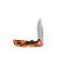 Couteau muni du Lockback (mécanisme qui verrouille la lame en position ouverte) Manche en fibre de verre et nylon de couleur orange et noir qui réduit la fatigue des mains pendant l'effort avec son moulage pour bien positionner les doigts. Trou à l'arrière pour le passage d'une dragonne