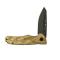 La lame s'ouvre rapidement grâce à son flipper, la lame est bloquée par un Linerlock. Lame revêtue de Cerakote® en acier inoxydable S45VN trempé(niobium et azote) avec le célèbre traitement thermique BOS de Buck, forme tanto inversée pour donner au couteau une excellente force de perçage.