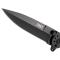 Une lame lisse forme Spear Point en acier inox 12C27 finition oxyde noir avec flipper, à cran intérieur et bouton double.