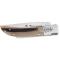 Acier : Acier 12C27 (inox) Composition du manche : Corne Poids : 165 Longueur lame (mm) : 105 Couleur lame : Blanche Profil de lame : Drop point Couleur manche : Naturel Tranchant : Lisse Ouverture Sécurité : Back Lock Port : /