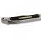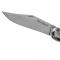 Une lame lisse en acier carbone SK-5 de forme Clip Point et de couleur blanche acier facile à aiguiser et résistant. Ouverture par encoche sur la lame. Prévoir une goutte d'huile de tems en temps.