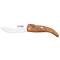 Le manche en bois d'olivier, avec sa finition naturelle, confère à ce couteau une esthétique raffinée et une prise en main confortable. La couleur blanche de la lame contraste élégamment avec le manche, ajoutant une touche de sophistication à l'ensemble.