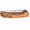 Manche en olivier et intercalaires rouges, rivets plats en laiton massif