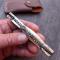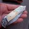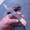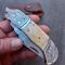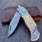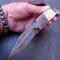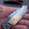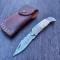 Couteau pliant Damas Manche en Corne Étui en cuir marron