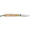 Le manche en hêtre, avec sa finition en bois naturel, procure une prise en main confortable et sécurisée. La dragonne intégrée facilite le transport et l'accessibilité du couteau en toutes circonstances. La virole en laiton assure une ouverture et une fermeture sécurisées, renforçant la fiabilité de l'outil lors de son utilisation.