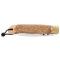 Le profil de lame Drop Point est idéal pour les tâches nécessitant une grande précision, tout en offrant une polyvalence appréciable. Le manche en hêtre, avec sa finition en bois naturel, procure une prise en main confortable et sécurisée. La dragonne intégrée facilite le transport et l'accessibilité du couteau.