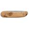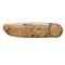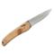 Lame lisse, satinée en acier inoxydable 12C27 avec liner lock et pointe tombante. Un manche de 10cm en bois de Cade et vis en inox.