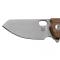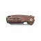 Ouverture par trou dans la lame pour le pouce ou tenon, verrouillage de lame linerlock pour une ouverture facile à une main. Manche micarta marron, ergonomique avec son décrochage au niveau de l'index entretoise en laiton