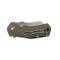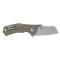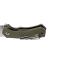 Manche titanium G10 vert, ergonomique avec son décrochage au niveau de l'index et encoches sur le haut de la lame pour un meilleur maintien du pouce.