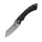 Extremité pointue, il coupe comme une lame de rasoir. Lame en acier N690Co délavée à cran intérieur et ouverture par double ergot de pouce. Manche G10 noir de 12,5cm structuré pour que la main ne glisse pas avec decrochage au niveau de l'index pour un maintien optimale.
