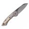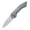 Ouverture par "Finger Safe" un ergot placé en haut du manche, placé dans un demi-cercle il suffit de le faire pivoter vers le haut pour que la lame s'enclenche.Un Manche en Titane anodisé gris avec des rainures en forme de griffes. Pivot et vis en titanium anodisé bronze.