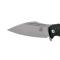 Une lame stonwashed lisse, de 10cm en acier Elmax dureté 58-60HRC avec flipper et cran intérieur de blocage de la lame.