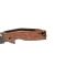 Ouverture grâce au trou dans la lame et verrouillage par framelock, ouverture possible à une main. Manche titanium, plaquettes cuivre avec décor floral au recto, ergonomique avec son décrochage au niveau de l'index.
