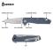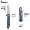 Sa lame de style Wharncliffe est fabriquée en acier inoxydable CPM-MagnaCut, un matériau de pointe reconnu pour sa rétention de tranchant, sa robustesse et sa résistance à la corrosion. La lame présente une finition stonewash et se déploie de manière intuitive grâce à un flipper de doigt et à la technologie BOSS Tech, qui utilise des roulements à billes pour une action constante et une détente précise ("lightswitching"). Le manche est fabriqué en aluminium de qualité aéronautique de couleur bleue, offrant une construction légère et durable. Le verrouillage de type Liner Lock assure un verrouillage sécurisé de la lame et une libération aisée. Un clip de poche à trois positions est inclus pour un transport polyvalent.