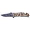 Le manche en aluminium, de couleur marron, confère à l'outil une prise en main confortable et sécurisée. La finition camouflage ajoute une dimension esthétique tout en restant discrète dans un environnement naturel. Le système de sécurité Liner Lock assure une ouverture et une fermeture sécurisées, minimisant les risques d'accidents lors de l'utilisation.