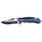 Le manche en aluminium, avec sa finition bicolore noir et bleu, confère à ce couteau une allure moderne et ergonomique. La sécurité d'ouverture est garantie par un système Liner Lock, permettant une utilisation en toute confiance. Avec une longueur de lame de 85 mm et une longueur totale de 205 mm, ce couteau combine maniabilité et efficacité.