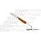 Ce couteau possède une lame en acier inoxydable ainsi qu'un manche en Teck, avec un petit cordon en cuir à son extrémité.