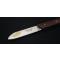 Belle finition du manche (beau bois, bien ajusté) et des parties métalliques, sauf la lame (!) dont l'affutage est irrégulier (photos disponibles à demande), mais qui coupe cependant très bien. Espérons que c'est un cas particulier. Couteau propre à l'usage mais les reflets irréguliers sur la lame sont vraiment pénibles à voir.