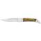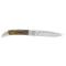 Le manche en corne naturelle confère au couteau une esthétique raffinée et une prise en main confortable. La couleur naturelle du manche s'harmonise parfaitement avec la lame blanche, créant un ensemble visuellement attrayant. Le système d'ouverture à cran forcé assure une sécurité optimale lors de l'utilisation, évitant toute ouverture accidentelle.