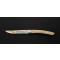 La lame, réalisée en acier inoxydable Sandvik 12C27, garantit un tranchant durable, une excellente résistance à la corrosion et une facilité d'entretien au quotidien. La finition est soignée, avec une lame marquée de l'inscription « Le Thiers par Le Fidèle », signe d'authenticité et de qualité.