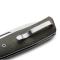 Une lame forme Drop Point en acier M390 à finition satinée avec ergots de pouce amovibles à cran intérieur.