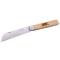 Le manche en hêtre, avec sa finition en bois naturel, confère à ce couteau une esthétique sobre et élégante. La couleur blanche de la lame contraste harmonieusement avec le manche, ajoutant une touche de raffinement à l'ensemble. Le système d'ouverture à cran forcé renforce la sécurité, en maintenant la lame fermement en position ouverte ou fermée.