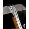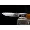 _ Lame en damas inox Damasteel (inox haut de gamme ) sur butées à billes céramique. Finition révélé à l'acide et polie.