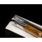 Pour lui donner encore plus d'originalité, les mitres en titane polie façon vintage vont vivre, se patiner et se rayer très finement, et le matériau de manche va évoluer au cours du temps à l'utilisation, en se patinant et en changeant petit à petit de couleur vers un ton plus foncé. Tout cela est pensé pour lui donner encore plus de caractère au cours du temps.