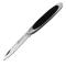 Production de Maniago en Italie. Lame blanche et satinée en acier AISI 420 dureté 54/56 HRC forme. Ouverture avec entaille sur la lame. Maserin gravé sur la lame. Manche en acier avec insert ébène