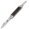 Production de Maniago en Italie. Lames blanches et satinées en acier inoxydable 420 dureté 54/56 HRC. - une lame de forme Drop Point de 6,5cm - une petite lame dentée de forme wharncliffe.