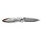 Son manche en acier inoxydable damas usiné par des machines-outils ultra performantes lui confère une ondulation qui permet une prise en main optimale et ouverture à une main avec deux thumb stud anodisés bleus pour plus d'aisance et une ouverture douce et rapide de la lame