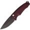 La lame en acier inoxydable S35VN avec revêtement PVD noir offre une durabilité exceptionnelle, bien que la composition de l'acier puisse varier selon la disponibilité des matériaux lors de la fabrication. Le manche en aluminium anodisé rouge ajoute une touche de style tout en assurant une grande résistance.