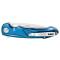 Le couteau pliant Mikov Elipt se distingue par sa lame en acier D2, reconnue pour sa robustesse et sa résistance à l'usure. Ce modèle présente un tranchant lisse, idéal pour des coupes nettes et précises. Le profil de lame Clip Point offre une polyvalence appréciée pour diverses tâches, allant de la découpe fine à des usages plus intensifs. Le Mikov Elipt est équipé d'un clip réversible, permettant un port pratique et adaptable selon les préférences de l'utilisateur. Sa longueur totale de 216 mm, avec une lame de 95 mm, assure un équilibre parfait entre maniabilité et efficacité. Le manche en aluminium, fini avec soin, arbore une élégante couleur bleue, ajoutant une touche de modernité et de style à cet outil fonctionnel. Caractéristiques techniques :