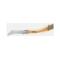 La lame de 8 cm est courbe pour faciliter la coupe. Son dos denté permet de gratter et nettoyer le champignon. La brosse en soies naturelles située au bout du manche est idéale pour dépoussiérer la cueillette et ôter facilement la terre.