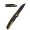 Le manche est fait de plaquettes en G-10 noir, un matériau reconnu pour sa robustesse et sa légèreté, offrant une excellente prise en main. La lame de type Sheepsfoot est fabriquée en acier inoxydable 14c28n, garantissant une excellente résistance à la corrosion et une durabilité exceptionnelle. Son mécanisme repose sur des roulements à billes en céramique, assurant une ouverture fluide et rapide.