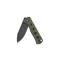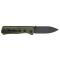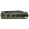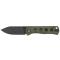 Le manche en G10, avec sa finition en vert olive, assure une prise en main confortable et sécurisée. Ce matériau composite est apprécié pour sa durabilité et sa résistance aux intempéries, ce qui en fait un choix judicieux pour les activités en extérieur.