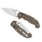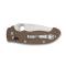 La lame et le manche sont reliés par le mécanisme breveté Ball Bearing Lock de Spyderco, profil plat. Manche 13 cm micarta marron doté de doublures en acier inoxydable squelettisées, d'une entretoise arrière en acier.