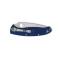Lame satinée, lisse de forme Drop Point en acier inoxydable CPM S35VN à cran intérieur et verrouillage par Linerlock. Manche FRN bleu moulé par injection plus léger que le G10 et antidérapant.