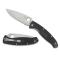Lame satinée, semi-dentée de forme Drop Point en acier inoxydable 8Cr13MoV à cran intérieur et verrouillage par Linerlock. Manche FRN noir moulé par injection plus léger que le G10 et antidérapant.
