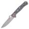 Ce couteau pliant fin est doté d'une lame stonewashed forme Drop Point, entièrement plate et affûtée, en acier inoxydable M390 de Böhler-Uddeholm issu de la métallurgie des particules. Avec flipper amovible et à cran R.I.L, profil plat. Trou rond entièrement accessible, la lame à finition délavée comprend une languette amovible et repose sur des rondelles à roulement à billes.