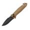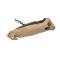 Le manche coyote tan est formé de deux plaquettes en polymère chargé de fibre de verre PA6 FV, vissées mécaniquement par des vis en acier inoxydable avec des dessins usinés en forme de chevron pour davantage de sécurité dans la main.