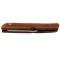 Un manche en micarta marron avec système d'ouverture pompe centrale.