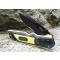 La lame en acier 440C est flexible et possède un bord dentelé sur le tiers arrière, permettant de couper cordes et cordages. Le Walther ERK est fixé par un insert. Pour faciliter l'ouverture et la fermeture du couteau, même dans l'obscurité, le manche en plastique caoutchouté est doté de trois inserts fluorescents. Les éléments les plus importants se trouvent sur le tiers arrière du manche : une triple gâchette et une aiguille, indispensables en cas d'urgence. Au lieu du clip double face Walther ERK, le couteau de sauvetage peut également être porté par une sangle en nylon robuste.