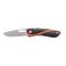 Léger et compact, ce modèle à manche noir et orange possède une lame lisse et une lame à éviscérer pour enlever la fourrure de l'animal tué, les deux lames bénéficient d'un blocage de lame. Ouverture à une main de la lame lisse