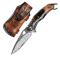Couteau pliant en damas, os de chameau et poignée en damas (3)
