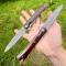 Couteau pliant acier damas manche bois collection custom rdv camping de poche