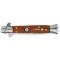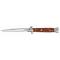 Couteau à ouverture automatique grâce à une simple pression sur le bouton du manche qui suffit à sortir la lame en inox et à la verrouiller. Manche en bois.