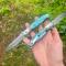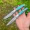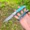 Couteau pliant damas luxe manche abalone nacre tactique survie camping
